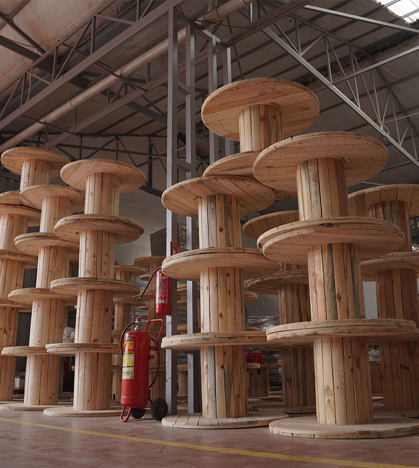 Ahşap kablo makarası, elektrik ve telekom kablolarının güvenle taşınması için İncir Palet tarafından üretilmektedir.